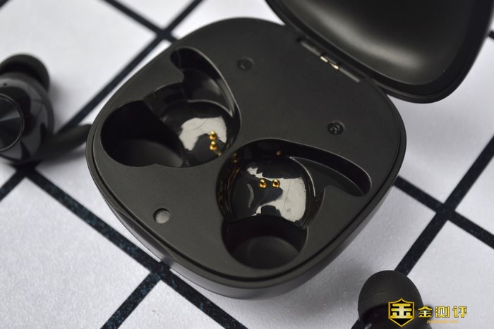充电仓内部的金属充电触点,精细且整齐,弹性十足,磁力强。