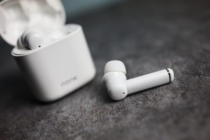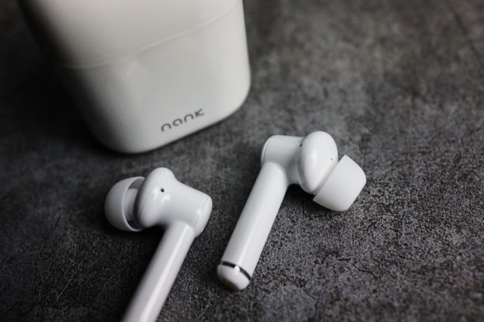 再来看看耳机部分,南卡A1的耳机看上去像是大号的airpods,特别是耳柄部位显得很粗壮,但它是入耳式的,这与airpods还是有很大区别。