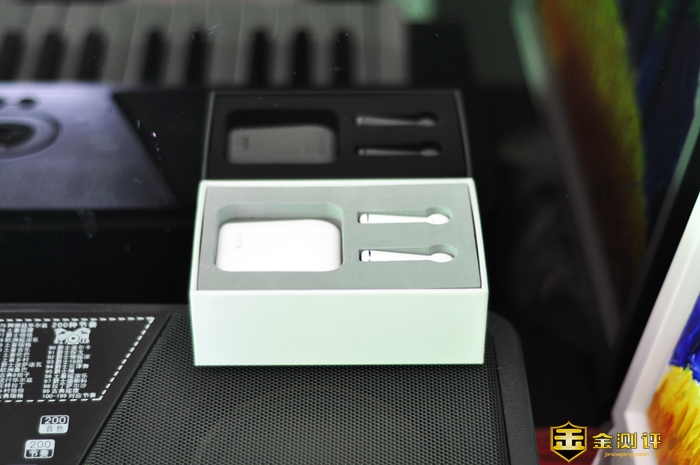 包装盒内使用泡棉模具,耳机和充电仓分列两侧,由双层泡棉包裹保护,外形乍一看,和AirPods非常形似。