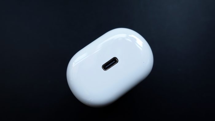 在充电仓的底部有一个Type-C充电接口,Type-C倒是用起来很方便,但是不知道这个充电接口为什么被设计到了底部,这样只要充电的时候,就不能把充电仓直立放在桌面上。