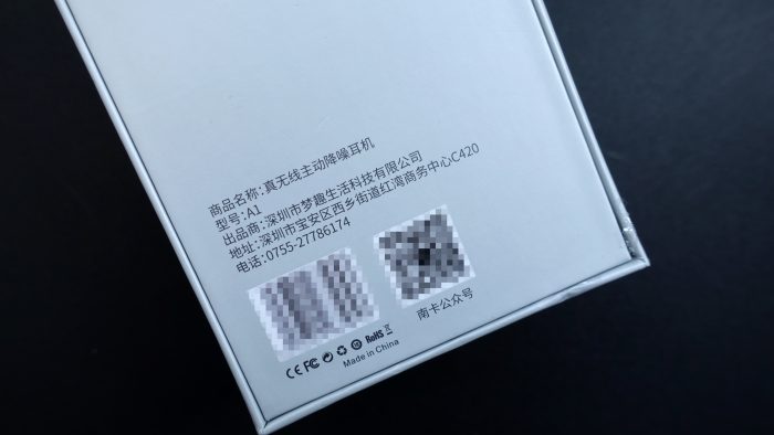 在包装盒的侧面有一句英文“Active Noise Cancellation”,简称ANC技术,这就是南卡A1的主要卖点之一——主动降噪。