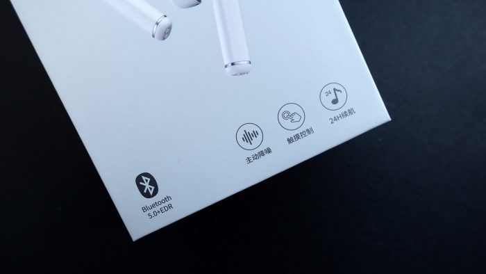 在包装盒的底部是南卡A1的主要卖点:蓝牙5.0技术、主动降噪、触摸控制、24H续航,但这并不是南卡A1的全部卖点。