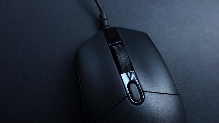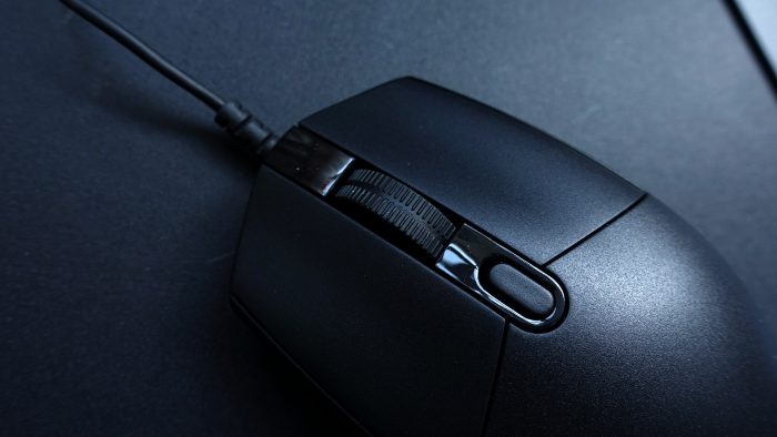 滚轮采用了和一代同款设计,其中滚轮外边还有一层橡胶包裹,拨动滚轮时,滚动安静,刻度感十足,同时外裹的橡胶也做了防滑设计,即使在手指有汗渍的情况下去拨动滚轮,也不会出现滑手的现象。不过滚轮与DPI切换开关挨得很近,这样食指滚动时容易被DPI切换键的边缘铬到。