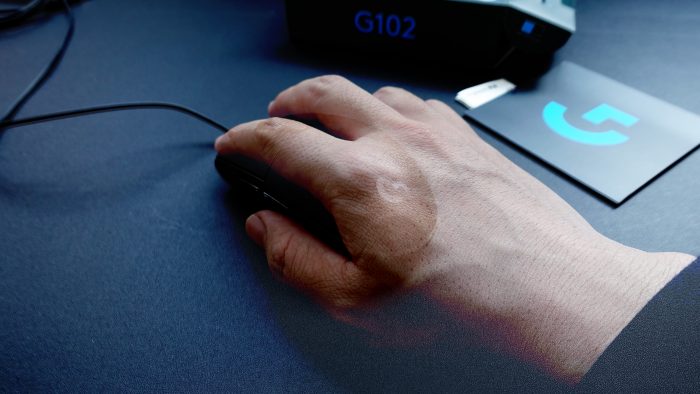 在按压方面,罗技G102二代光学鼠标微动开关再加上按键张力系统,使得鼠标按键的寿命约高达上千万次点击,每次点击都比较清脆,同时回弹也非常迅速,比较跟手,几乎没有什么滞后感。