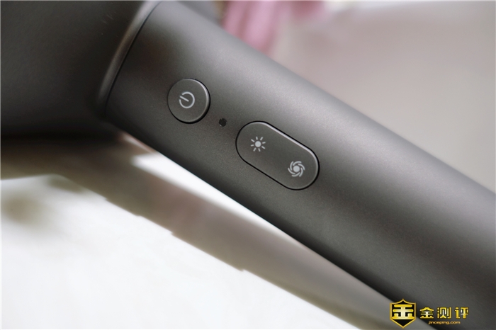 按键采用的是按键式的设计,长按2秒可以打开和关机,下方的是温度档和风速档,在使用上也特别的方便,设计的也非常的科学,采用的是长按式开关机,这样能够防止误触碰。