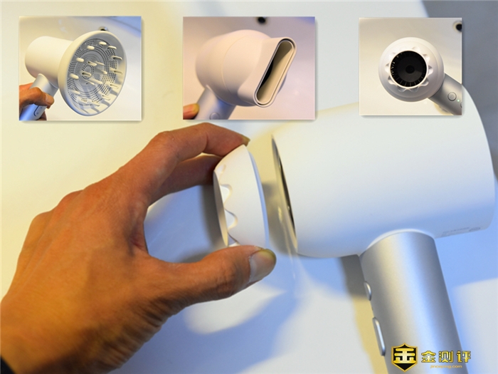 高速风嘴的背面是一个磁吸式的环状结构,可以与吹风机直接吸附组合使用。