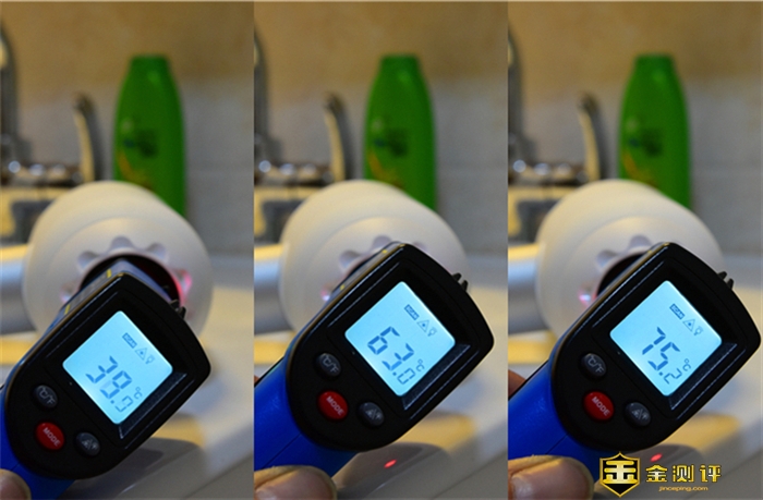 温度方面,在3档温度档位下我们分别测得吹风机出风口温度分别为39.9°、63.0°、75.2°。所以严格意义上来讲冷风档并不是非常冷而是和体温相近,类似于自然风的感觉。