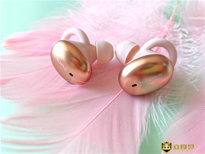 万魔时尚豆耳机正面采用金色亮面设计,应用NCVM真空色彩工艺,具有真空镀层不导电,无线信号零干扰,防汗,耐磨,不褪色作用。黑科技的应用也令万魔荣赝了IF设计大奖。白色“1MORE”LOGO覆于其上,整体外观简约时尚,手感圆润舒适,细腻精致让人心动,爱不释手。耳机入耳部分跟充电仓一样采用米白+圆润素雅的外观设计,耳撑外覆于上,与充电仓一体性很强,外壳材质也是高度统一的。机身轻便小巧,只有6.2g,采用了符合人体工程学的半入耳式设计,左右耳机正面各有一个LED指示灯和多功能按键。