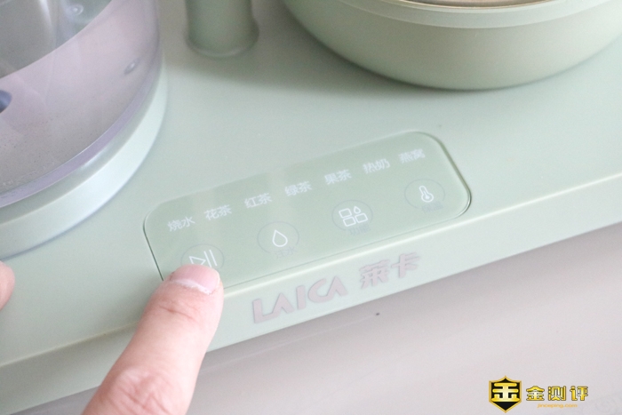 下方为四个功能按键,开始键、注水键、模式调换键、恒温键,莱卡MINI养生净饮机还拥有1小时提壶记忆,饮食煮好后,再此放回自动启动续航程序,无需重按,让我们的炖煮的食物始终保持在最好的状态。