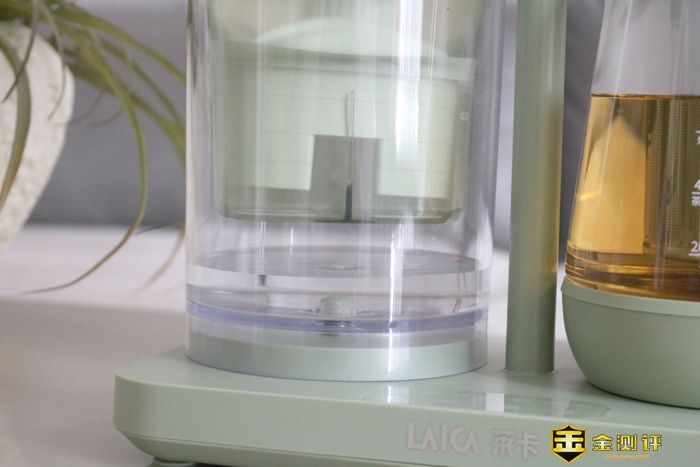 莱卡MINI养生净饮机煮壶采用的高硼硅玻璃,具有耐高温、高强度、高硬度的特点,在使用时可以直观看到炖煮食物的状态,最大水容量标注为600ML,烧一次水大概可以供两个人喝。而且刻度尺标明更加让炖煮食物时水量更加有掌握。