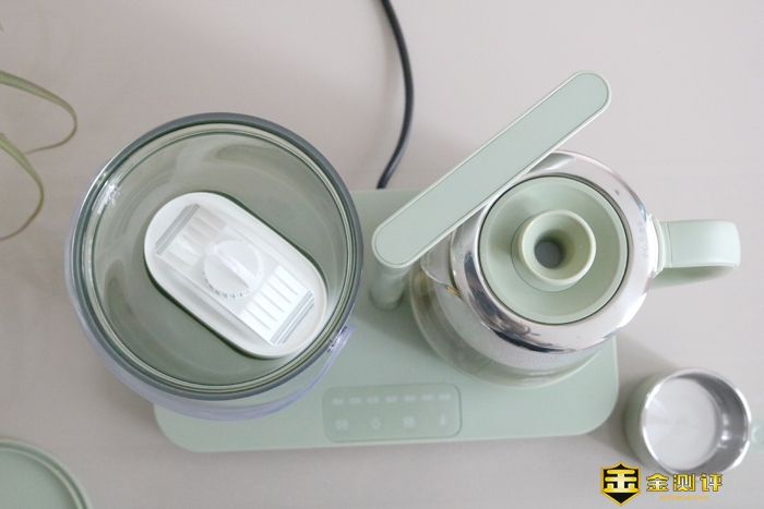 煮壶盖子上的功能也比较多,花茶防止倒出瓶口滤网,二次旋转可多功能炖煮使用,温牛奶,煮茶等。