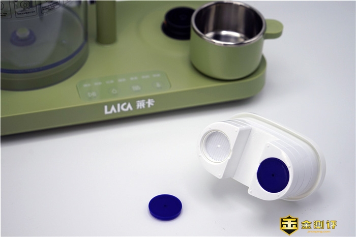 LAICA莱卡MINI养生净饮机(下文简称莱卡净饮机)打开包装主要分为3个部分,滤水桶、热水壶与底座。主机尺寸为280 x 155 x 233mm,主色调为豆绿色,看着比较清爽,热水壶烧水时最大水量为600ml,非常适合一个人使用,所以用MINI来描述非常恰当,下面对每个部分分别展示一下。