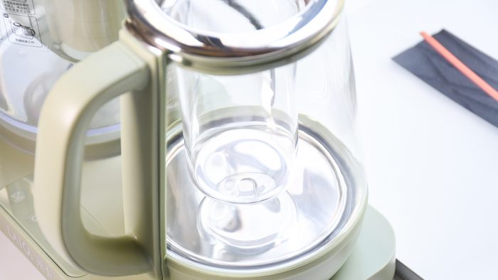 烧水壶以食用级高硼硅玻璃和304不锈钢材质为主,侧边标记有刻度,茶炖最大容量为400ml,烧水最大容量为600ml。在使用中一定要掌握好加水容量,避免烧开后沸腾溢出。