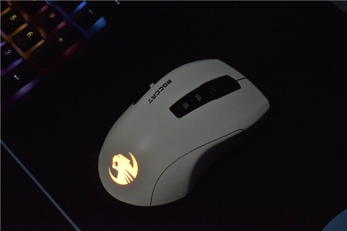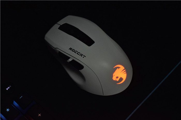 通电后,鼠标的LOGO位置会有RGB灯光,并且可以使用软件ROCCAT Swarm进行控制。