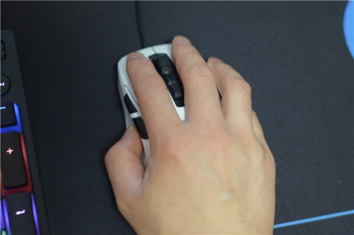 整个鼠标的表面进行了类似磨砂的处理,整体上手后触摸感舒适,并且加上小巧的设计,整体上手感觉还是非常出色的。同时,加上白色的主配色,整体看上去也非常好看。