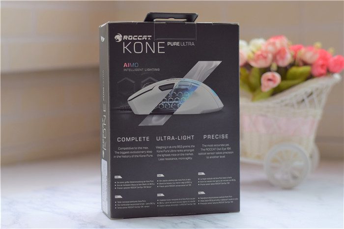 冰豹夜枭ULTRA轻量版RGB电竞鼠标的包装采用一贯的黑色作为主色调,包装的正面印有产品的实拍效果图,可以对鼠标的外观有个大概的印象。包装的背面则印有鼠标的一些主打特点等各种详细信息。