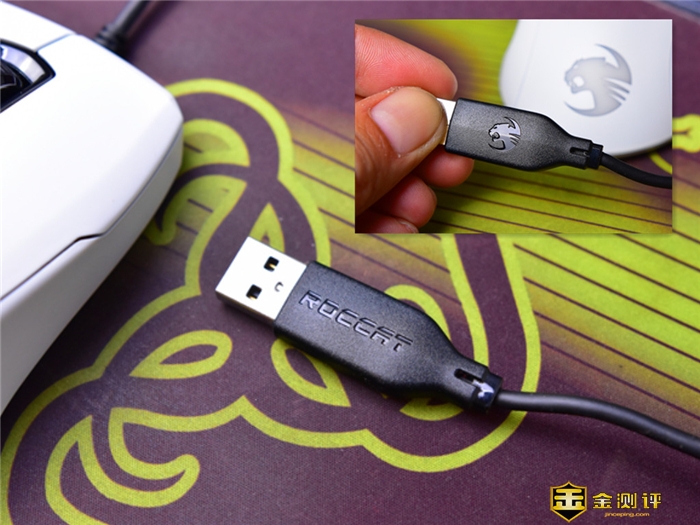 USB接头的正面为ROCCAT的英文LOGO,背面则是豹头的标识。