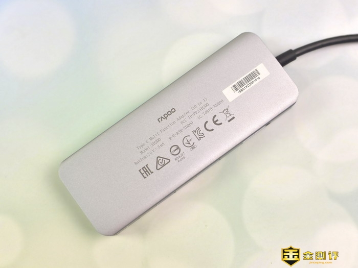 雷柏XD200 USB-C 10口扩展坞的背面,印有相关的规格参数信息。