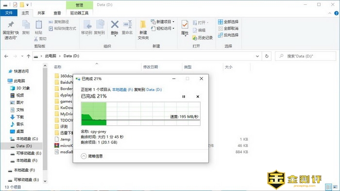 通过从移动固态优盘复制文件到本地硬盘上,可以看到其传输速率,确实达到了USB3.0的标准。