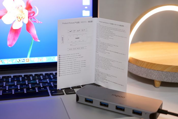 雷柏XD200扩展坞的全家福很简单,除了扩展坞机身,就是一本小巧的说明书了,说明书上对于产品的介绍还比较详细,而且每一个接口都做了说明,如果不是很明白可以了解看看。