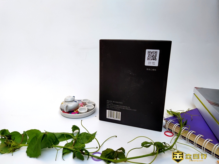 盒子背面上部印有防伪标识,下面是产品名称、型号、厂商、厂址、电话等。整体外包装是简约设计,黑色的设计与耳机也能做到互相协调。