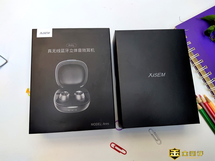 包装方面:这款西圣 Ares战神蓝牙耳机包装采用以黑色为主体,复式抽拉包装的方式,盒子外面是产品的渲染图,上面印有中文“真无线蓝牙立体音效耳机”,拉开外包装则是简洁的黑色盒子,中央印有产品的logo“XISEM”字样。