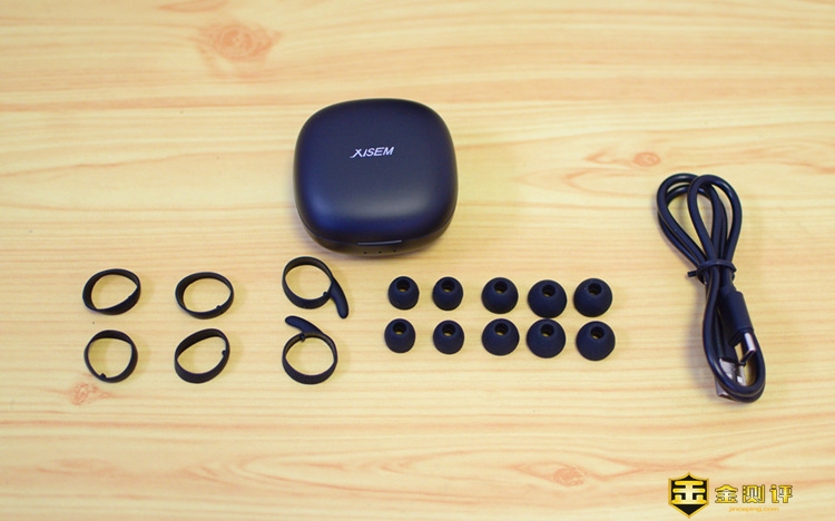 说实话,这款耳机的配件,应该用豪华阵容去形容才对:除了充电舱和充电线这些蓝牙耳机标配外,还配备了五组大小不同的耳帽,更加适合不同大小耳洞的用户,同时还标配了一付耳机牛角型固定套,以及两付耳机固定圈