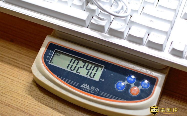 其实拿到这款键盘给我第一个印象,就是特别重,上称一称果然不出所料,它的重量超过1000克了,我有点深度怀疑这里面加了配重铁(哈哈,开个玩笑),同样的钱,买个重点的不吃亏