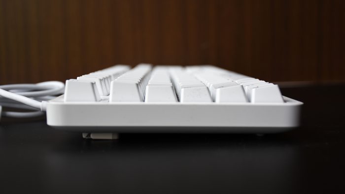 作为一款办公键盘,自然与绚丽的RGB灯效无缘,不过雷柏也为这款键盘加入了纯白色的背光,搭配白色的机身外壳显得非常自然舒适。背光支持四个档位的调节,通过FN+上下方向按键可以快速调节。