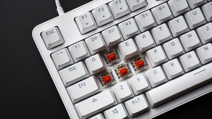 在日常使用中,直接评价一款键盘好坏的两个因素自然是键帽和轴体。在前面的外观部分也有提到过,MT710采用的是注塑工艺的键帽,表面为细微的磨砂质感,初上手的感觉还不错,触感与我一直在用的一款千元价位的键盘差别不大。至于长时间使用是否会出现打油的现象现在还无法得知。