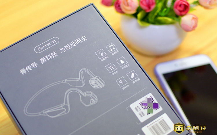 包装非常简洁,盒子背面印有“骨传导 黑科技 为运动而生”的口号,以及耳机的外观图和耳机相关信息:佩戴舒适、高清音乐、钛合金、防汗防水、蓝牙5.0等