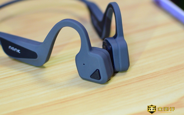 这款耳机的外观,有点类似于那种项圈式蓝牙耳机,这种设计能够拥有更好的运动防掉落性能,右耳外侧印有“NANK”的logo字样
