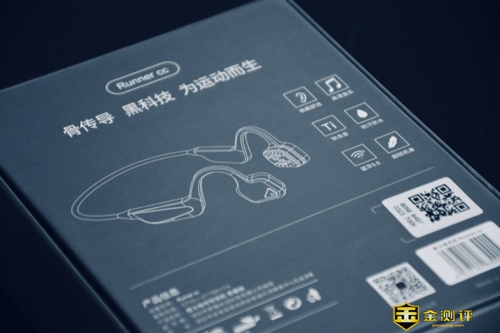 南卡Runner CC骨传导运动耳机改变第一代白色的包装设计,换成了深蓝近黑色的色调,整体设计效果与产品的颜色也较为统一,视觉效果更加商务稳重。正面设计有品牌logo和产品名称,背面设计产品信息与产品功能卖点。