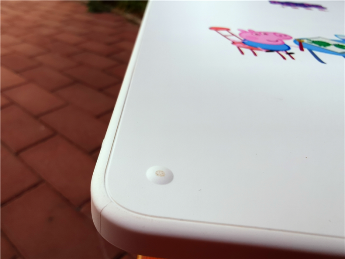 另外要说的是液晶小黑板的背部上小猪佩奇和乔治画画的图案是UV彩印,可以更好的耐磨损不易掉。加上四周的凸点,可以更好地让液晶小黑板不会轻易磨损。