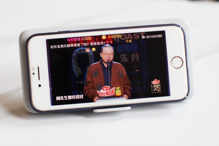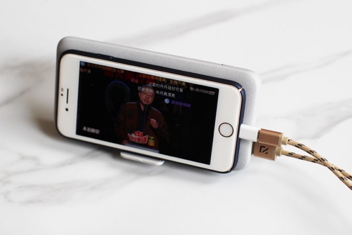 因为有支架的的设计,所以在无线充电时可以把充电宝当做一个手机托架,让手机立在桌面上,充电的同时不耽误追剧。