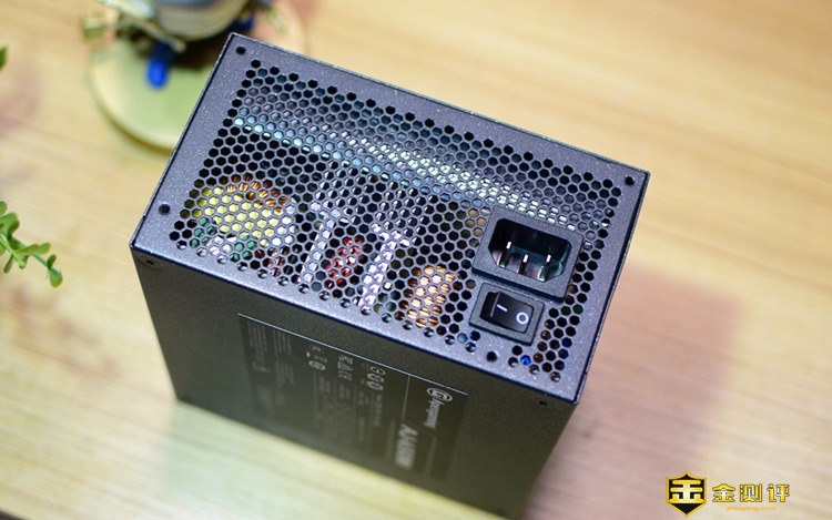 这款电源的供电端,同样采用了蜂巢状网格设计,可以进一步增强空气流通效果,保障内部元器件的通风散热;同时在供电插口的上侧,还专门设计了一枚开关按键,使用的时候更加方便