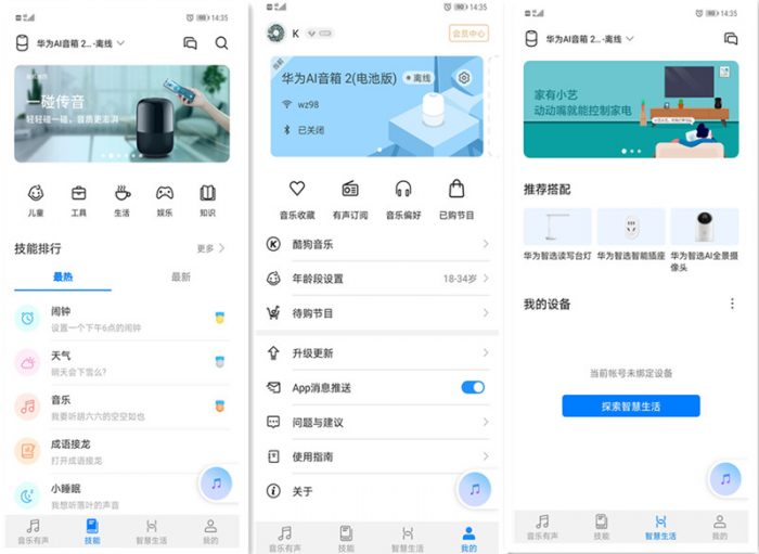 与手机的连接很简单,华为手机轻松一键式连接,WIFI密码都不用输入,自动识别加入!曲库主要是以华为音乐与酷狗音乐为主,海量的曲库满足你躁动的心!不仅曲库海量!故事、人文、公开课等……一应俱全,满足一家人的使用需求!