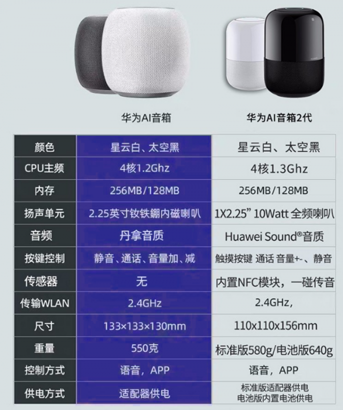 华为AI音箱2(电池版),和普通版相比较,电池版更具有便携性,这也使它应用的场景多样性!无论是车载还是出去游玩,打开热点就是ai智能小伙伴,NFC一触碰,就是音响~可玩性也高!回头率也高!有了它在野外也可以蹦迪啦!