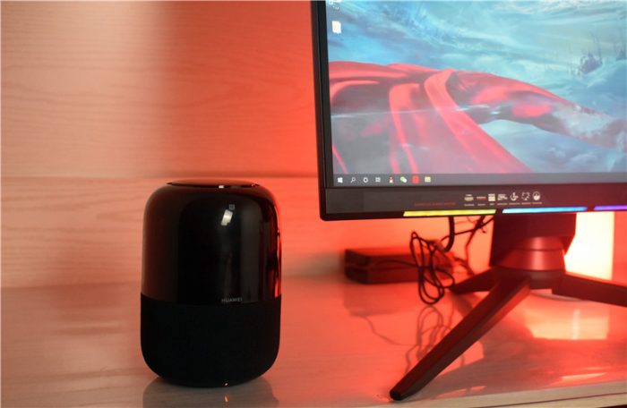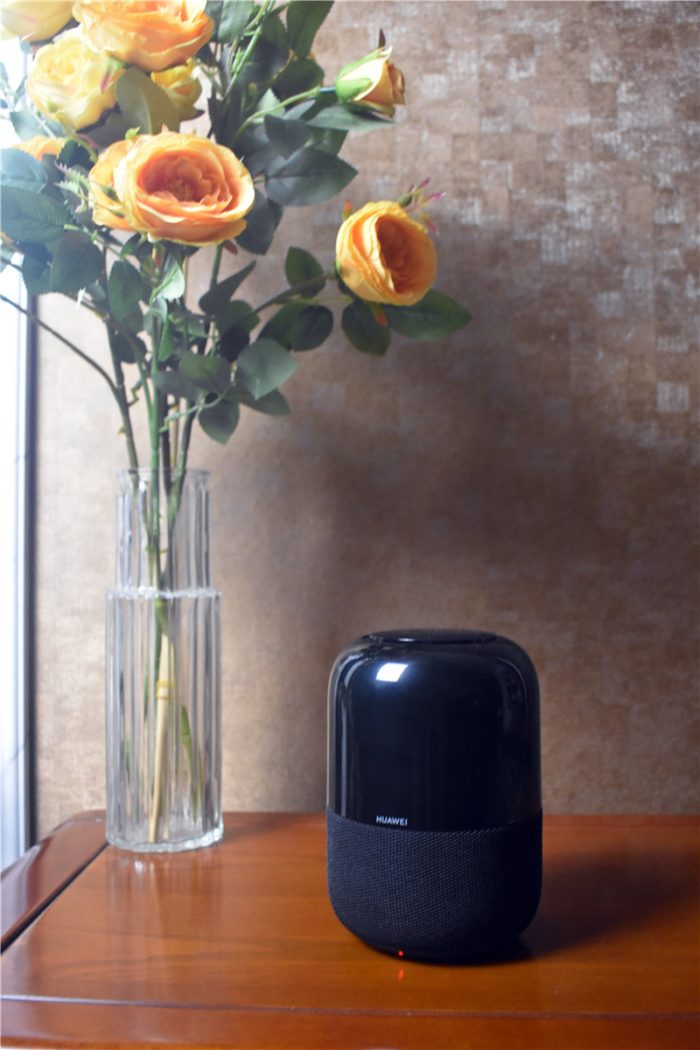相比较上一代的音箱,外观以及硬件的提升是不少的;华为AI音箱2(电池版),小编拿到的颜色是太空黑,上半部分为钢琴烤漆,下半部分为飞织网布,总体看起来很深邃!黑色的主题色,百搭各种家具。