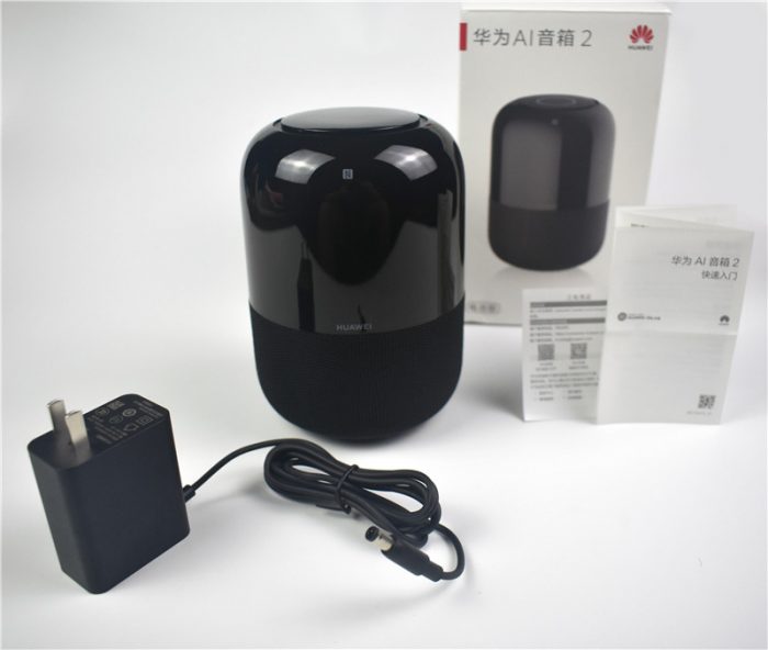 产品全家福:华为AI音箱2(电池版)*1、说明书*1、三包凭证*1、电源适配器*1。