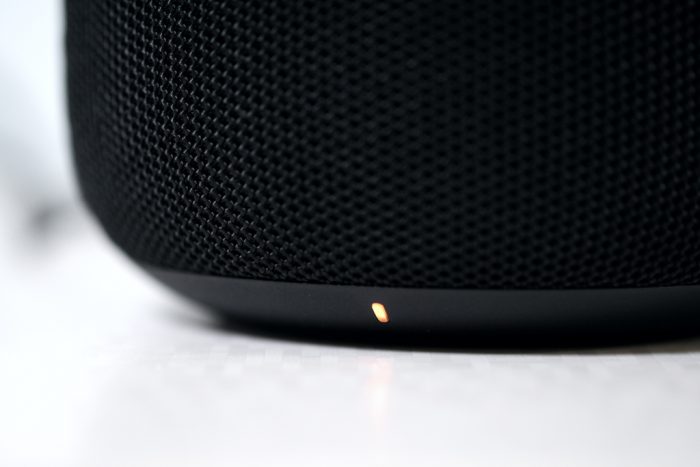 华为AI音箱2“块头”不大,“肺活量”却是充足的,因为它搭载了1个2.25英寸全频10W钕铁硼喇叭单元和2个低音增强喇叭单元。我家客厅面积大约30平方,无需将华为AI音箱2的音量调到最高,响度就已经可以充满整个空间了。
