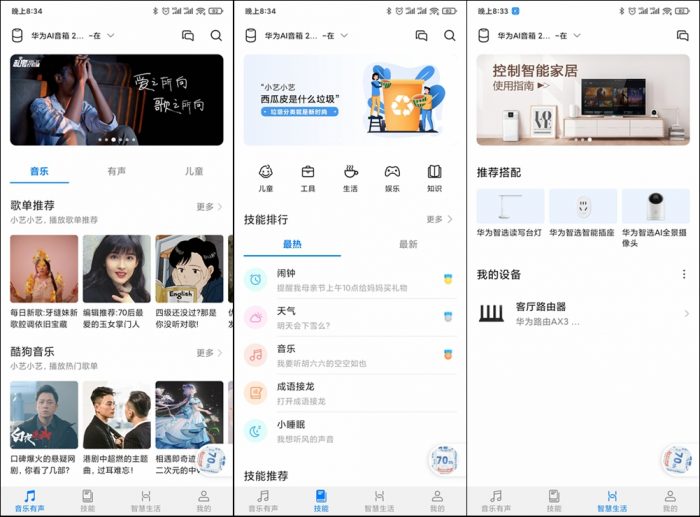 资源方面,华为AI音箱2没有任何问题,因为AI音箱App集成了华为音乐和酷狗音乐,不仅拥有千万级无损曲库,而且还有适合老人小孩聆听的有声读物,可以说基本上你想要的内容,它都能给你找出来。至于日常的语音对话,那就更加小菜一碟了,只要“小艺小艺”唤醒音箱,它就能有问必答,告诉你想要的答案。此外,通过语音去控制智能家居产品也是华为AI音箱2的一大功能,使用HiLink定义生活场景,控制国内主流各种家电和智能家居产品,智能联动可以更好地提高生活品质。
