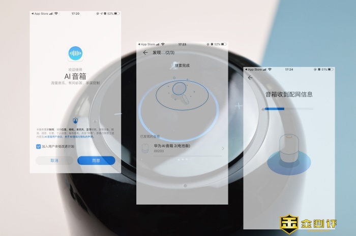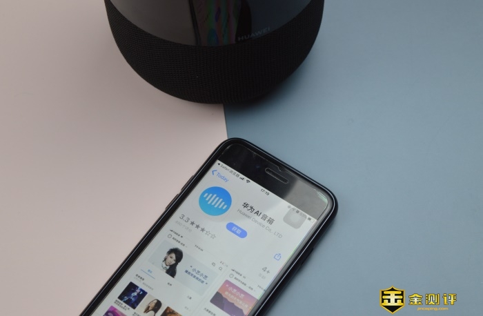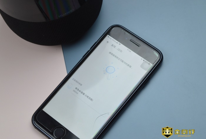 连接方面,按部就班长按开机键待顶部环形指示灯蓝色闪烁即为进入配对模式,此时连接蓝牙或者下载官方app华为AI音箱皆可。