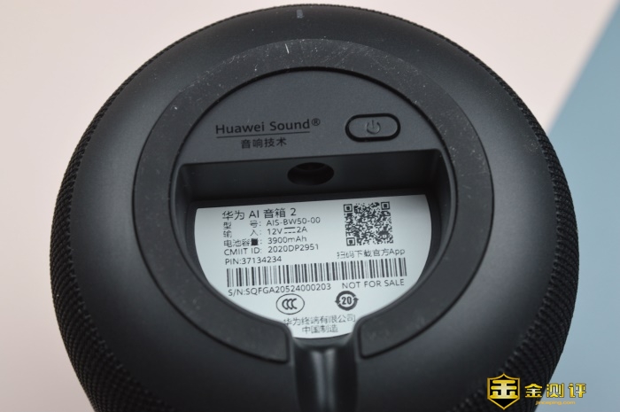 开关按键被设计在了华为AI音箱2的底部,这也是产品在外观和实用上做得折中妥协,虽然日常使用需要掏底开关机不过整体的外观一致性更好,而且产品本身3900mAh的电池容量加上对于大部分使用场景都是固定一隅并连接电源适配器的情况,所以实际体验中并无太明显的掣肘感。
