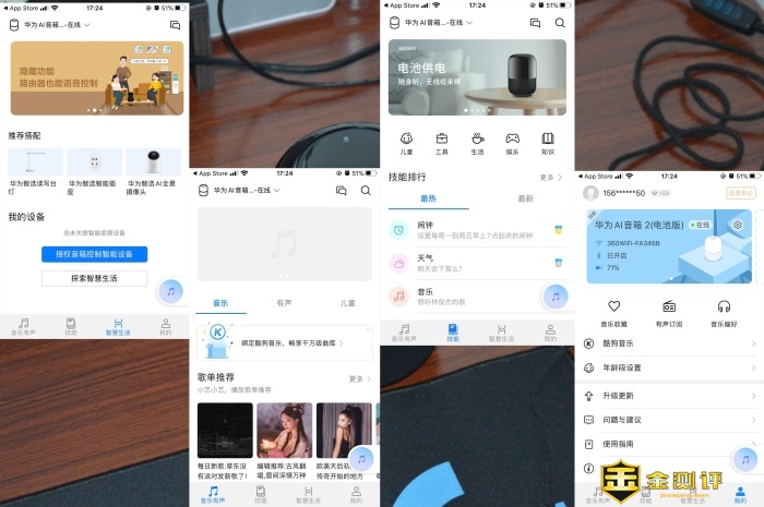 对于智能音箱比较核心的语音交互功能,华为AI音箱2给出的音频采集方案是位于顶部四个麦克风环形阵型来组合收集,实际使用中也比较随心,无论是哪个方位的语音指令都可以比较快捷迅速且敏感的捕捉并解析做出反馈,很大程度上提高了产品的智能交互体验。