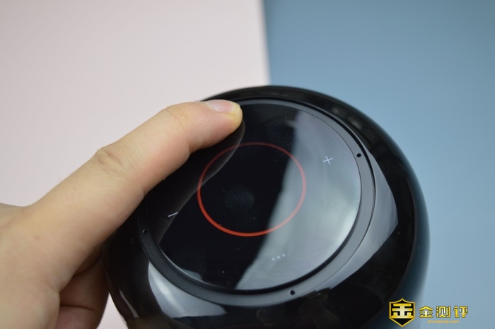 顶部的按键分列四向,按键功能分别为静音按键、音量-/+以及一颗多功能按键,此外中间的环形LED灯带可以通过不同色彩直观提示用户当前工作状态(语音唤醒、立体声组合配对、一碰传音等不同状态下指示灯色彩不同),键位功能比较简单,操作逻辑也很自然,借助说明书或者有相关产品使用经验的朋友在简单上手之后即可熟悉。