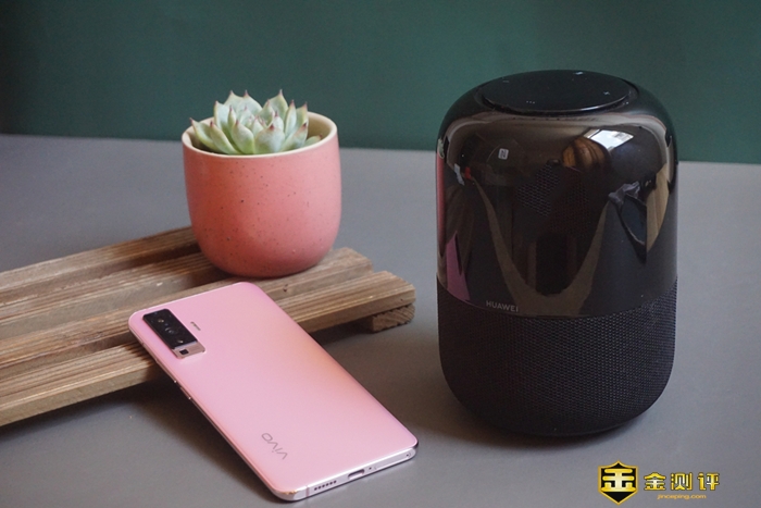 HUAWEI Sound®,华为AI音箱2它里面内置了一个10W的全频扬声器和两个重低音增强单元组合,也就是被动振膜,它的内部是一个密封的空间,靠一个全频喇叭来带动旁边的两个振膜,来加强低音效果。