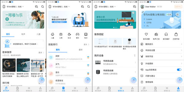 与以往传统的华为生态产品不同,华为AI音箱2电池版的主要功能都集中于AI音箱APP中,用户可以通过绑定酷狗账号实现更为丰富的音频资源播放,同时也可通过多条的语音指令实现娱乐、实事、电器等智能操控,并且还可通过账号同步的手段管理已成功添加至智慧生活APP中的智能设备,并且在使用过程中还可通过APP实时观察设备耗电情况。