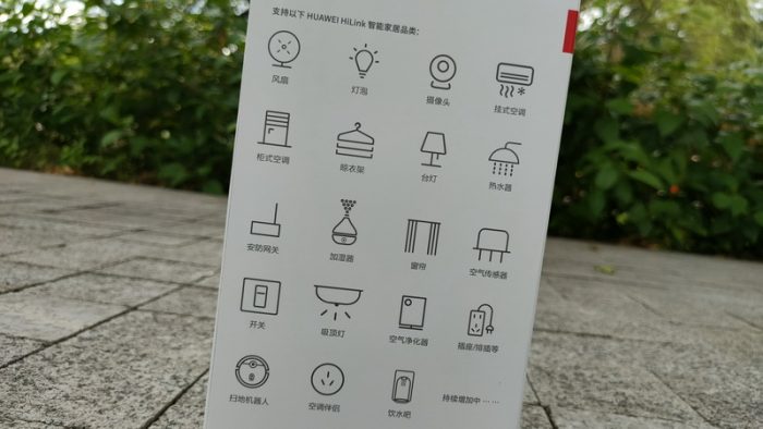 从包装的正背面信息列表中,可以了解到它内置的3900毫安电池可以支持5小时左右的续航,并且支持蓝牙、一键传音、声控、Hilink等一些特殊操作。