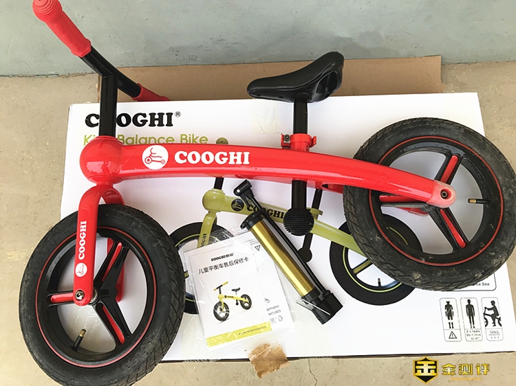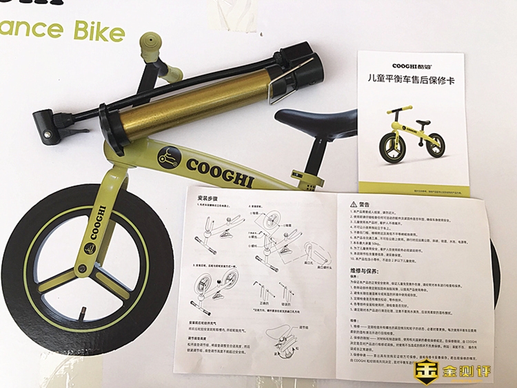 除了儿童平衡车本身,包装箱内的配件还有打气筒、产品保修卡、使用说明书和标准的安装工具。此处招财猫要给厂家提出一个建议,之前酷骑系列的儿童滑板车包装箱上都设计了塑料提手,新品儿童平衡车也应该保留……